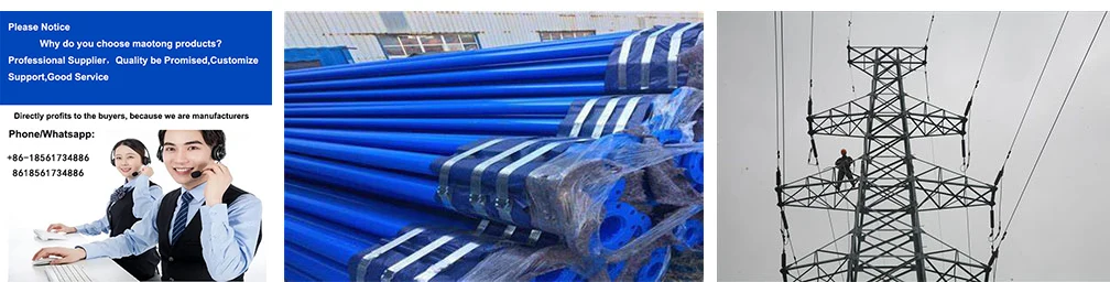 Maotong societas columna materia Angli Steel 330KV Turris Transmissionis Electric Excelsa Voltage est tubus ferreus inconsutilis, quae parvam onus venti coëfficientem habet, sed vehementis venti resistentiam. LABIUM EXTERNUM practicum connexum turrim, fulmen distrahens resistentia fortis est, non facile damnum, sumptus sustentationis eius valde imminuuntur.
