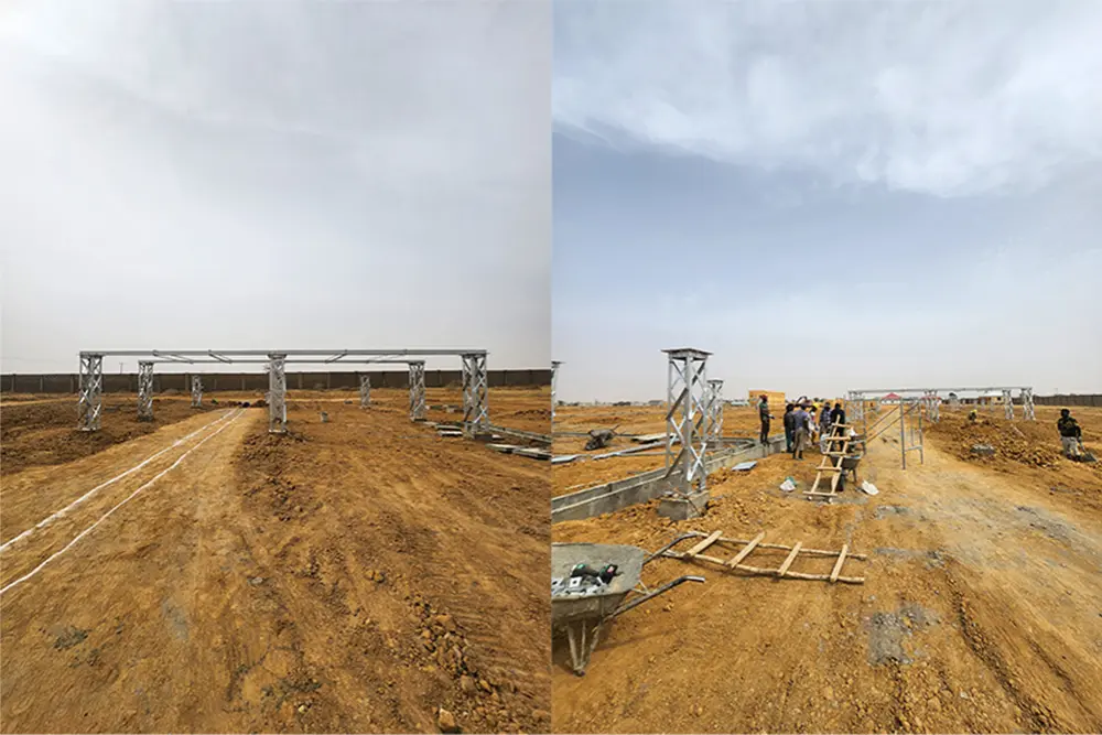 Etiam cum loci temperatura ferendi 35,6 gradus Celsius, turba cito movetur. Partes ferro aptatae nunc in terra sunt et parata ponenda sunt. Hae structurae aedificantur ut gravibus postulationibus 330kV substationis tractandis et stabilitate diuturna pro loci craticulae potentiae stabilitate curent.