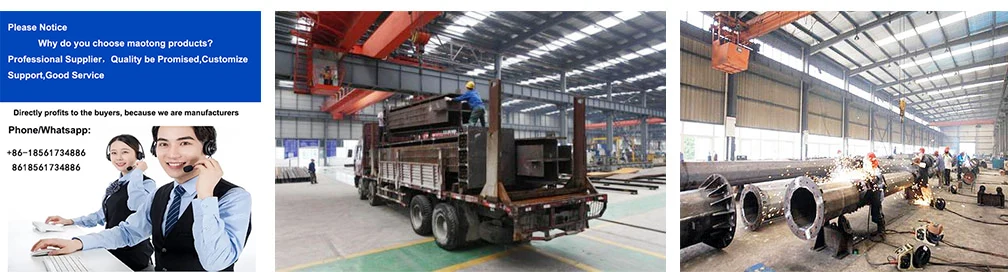 Maotong societas columnae materiae Anglicae turris ferrei inconsutilis est tubus chalybeus, quae parvam onus venti coefficiens habet, sed resistentia fortis venti. LABIUM EXTERNUM practicum connexum turrim, fulmen distrahens resistentia fortis est, non facile damnum, sumptus sustentationis eius valde imminuuntur.